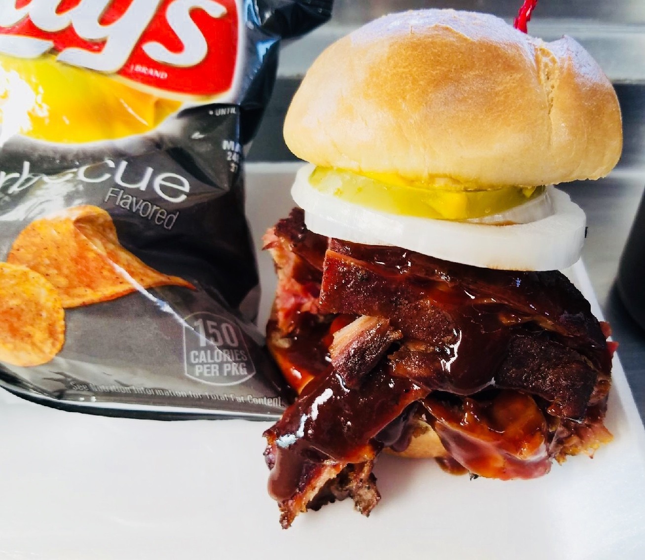 BRISKET TOPPED WITH PICKLES, ONIONS, MUSTARD AND SILKY SAUCE WITH YOUR CHOICE OF ONE SIDE